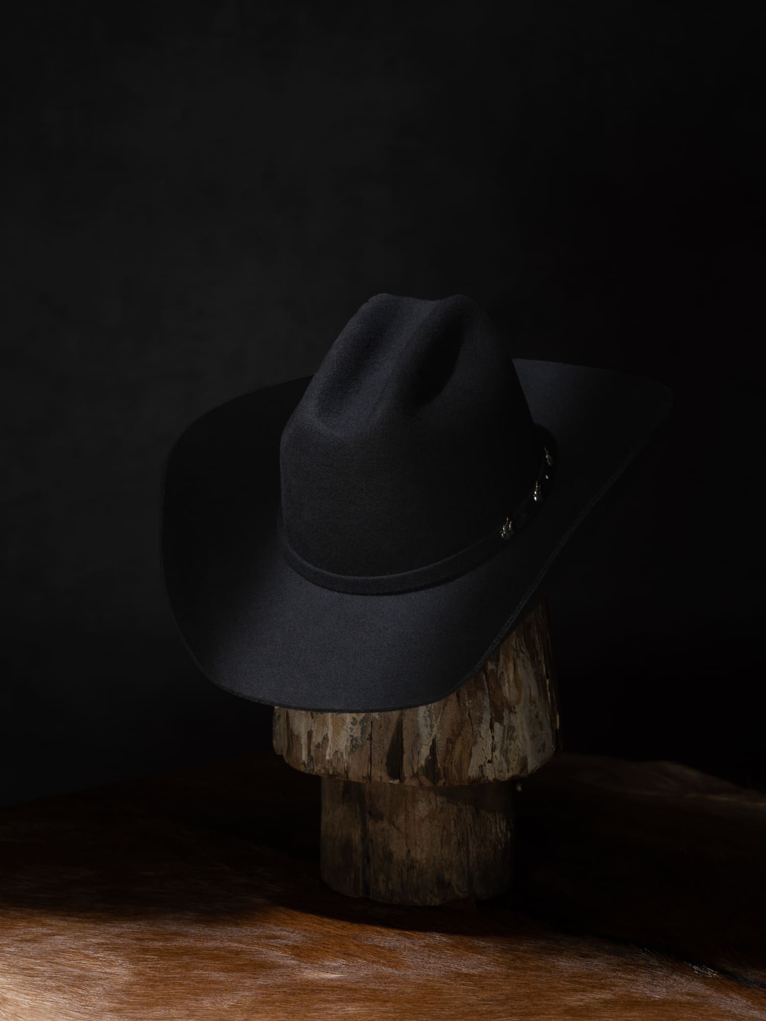 The Wildfire Hat in Black channels untamed energy through sleek Western form.