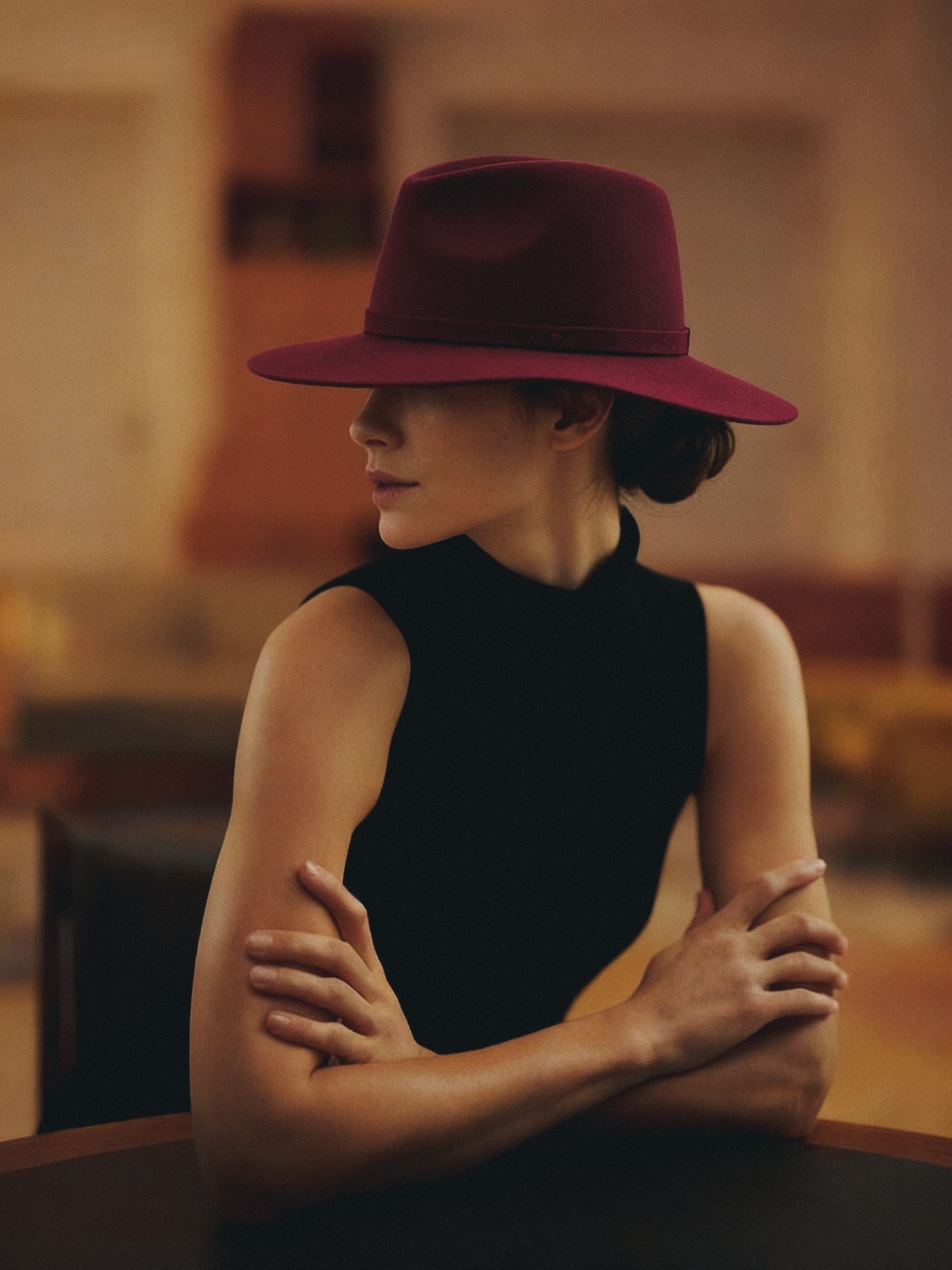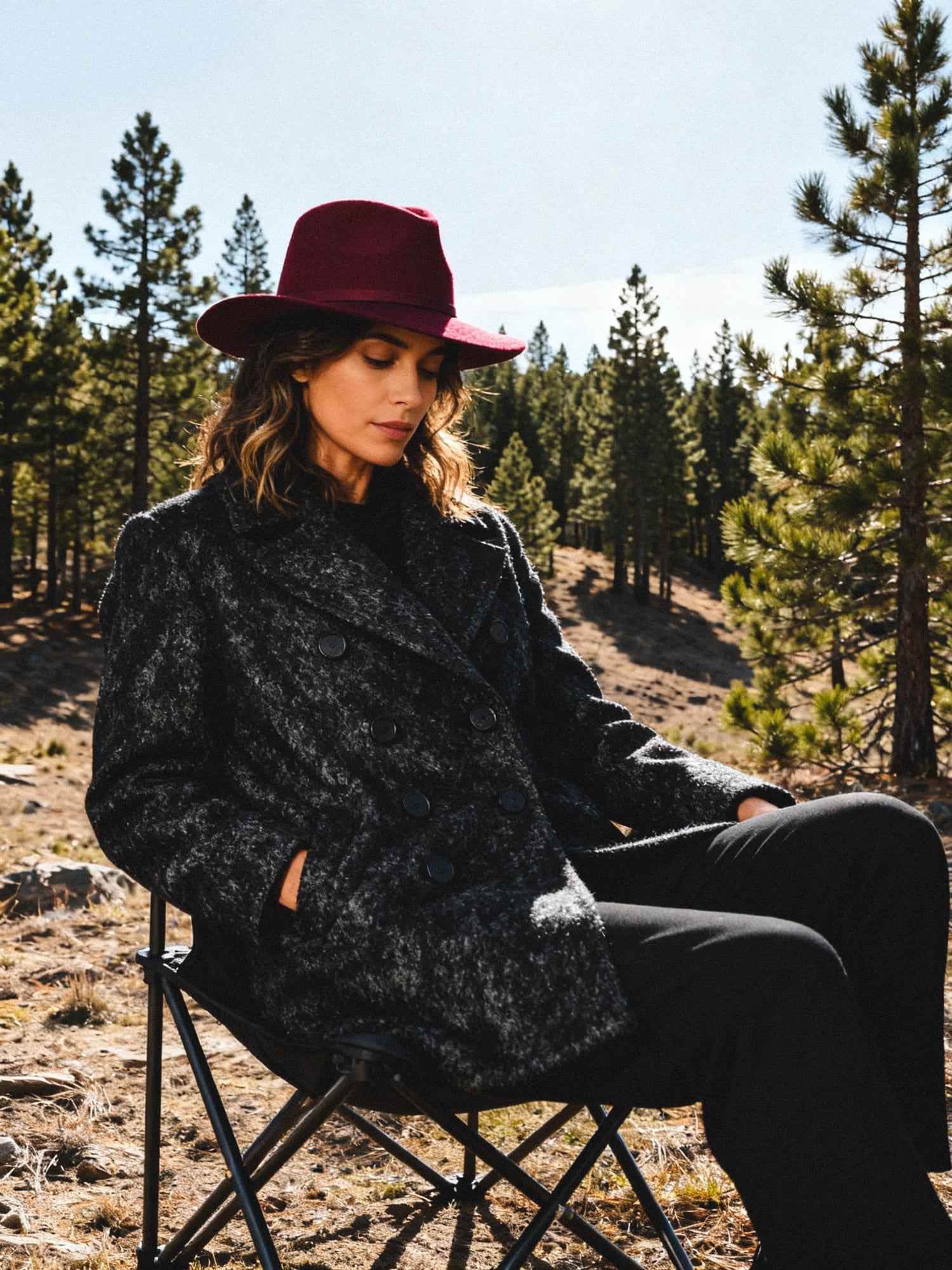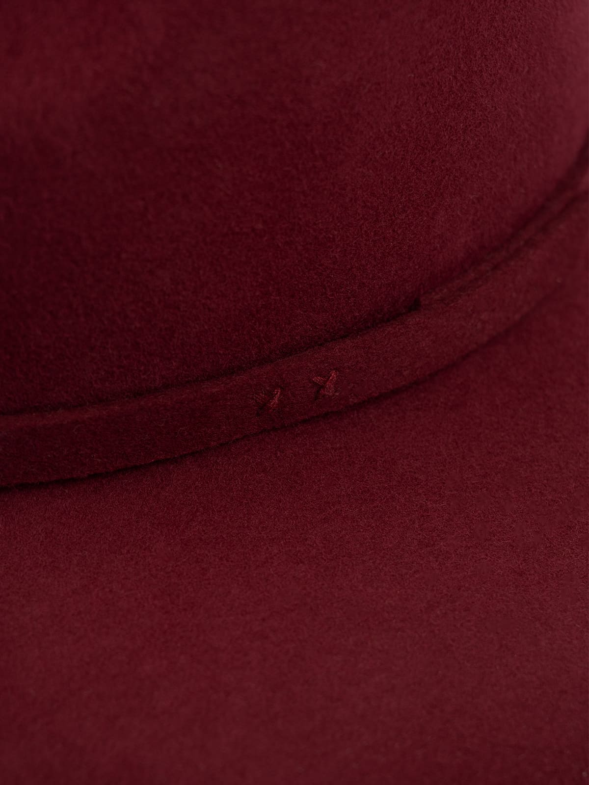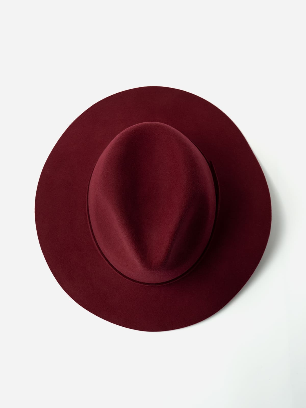 The crown is finished with a tonal felt band — detachable for personalized styling — bringing a deep, confident warmth that elevates both casual and dress looks.