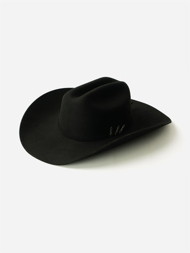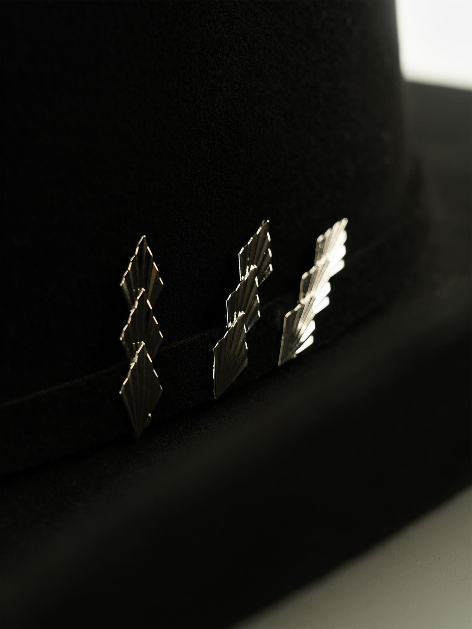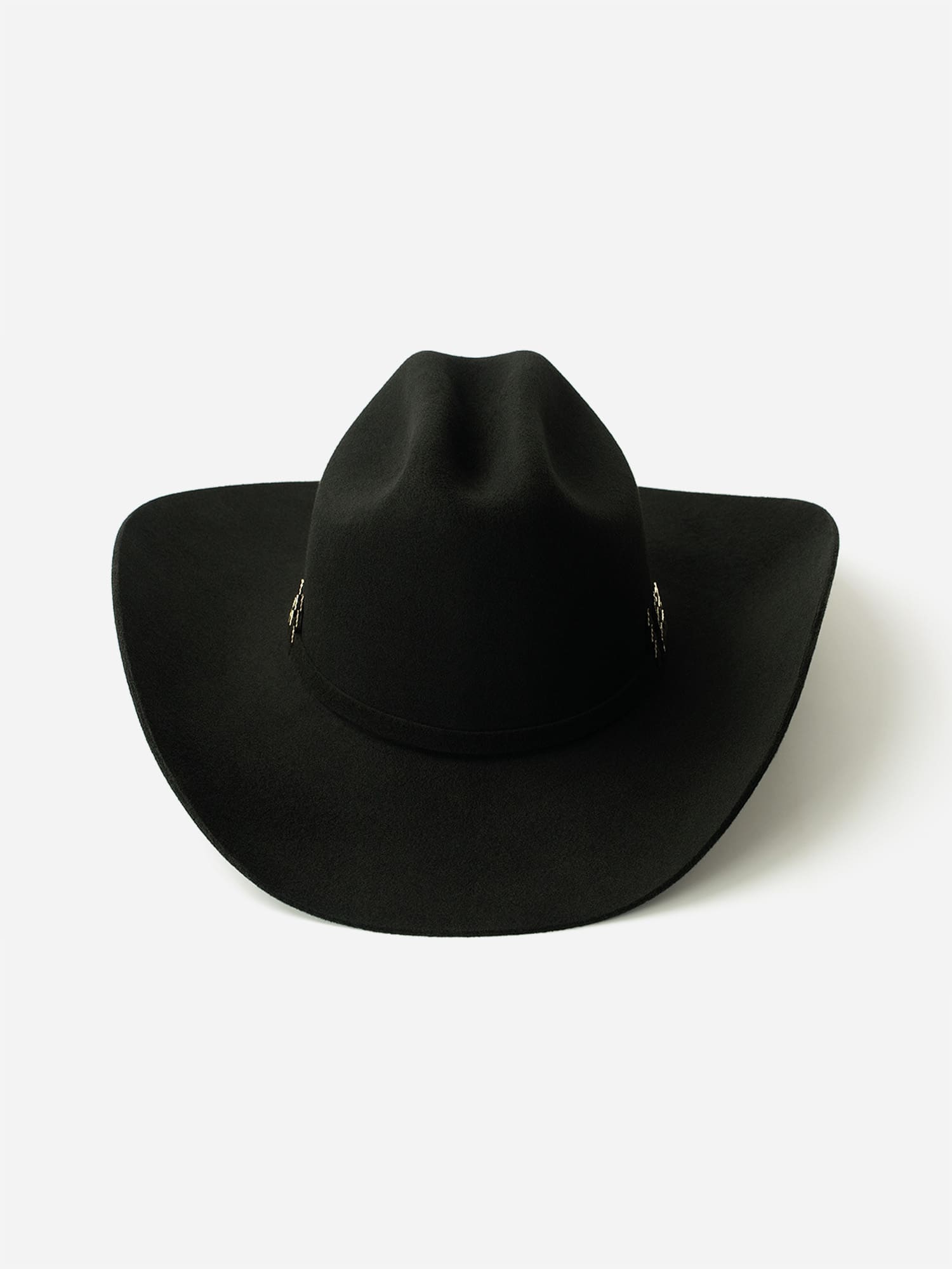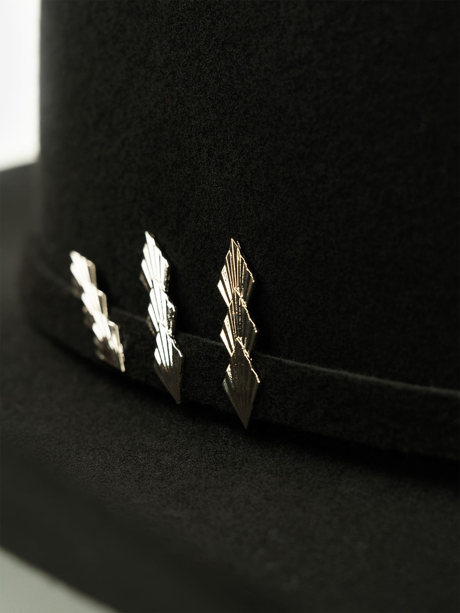 Around the crown, the hat is accented with sleek silver arrow motifs, adding a sharp, modern edge to its classic Western silhouette.