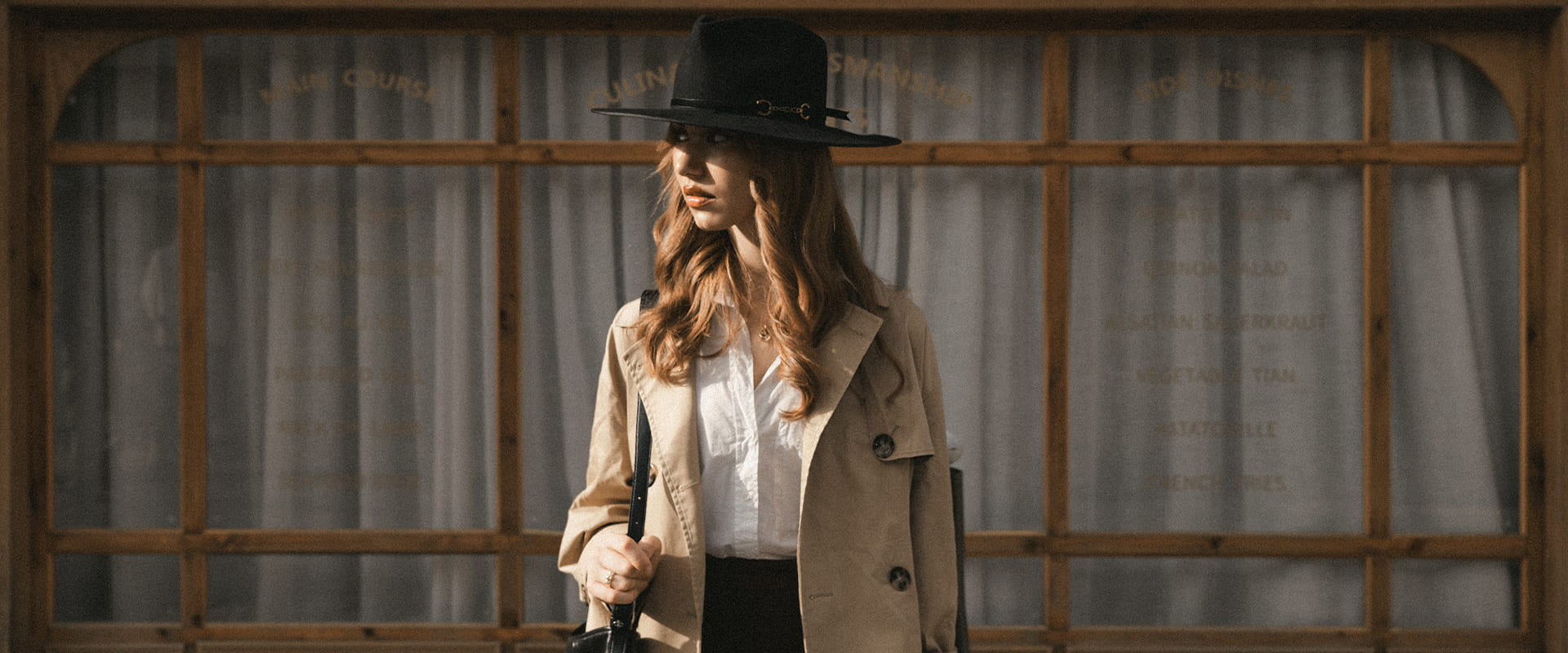 Defined crown, narrow brim, urban attitude. Easy to dress up or down — a silhouette that carries presence without effort.