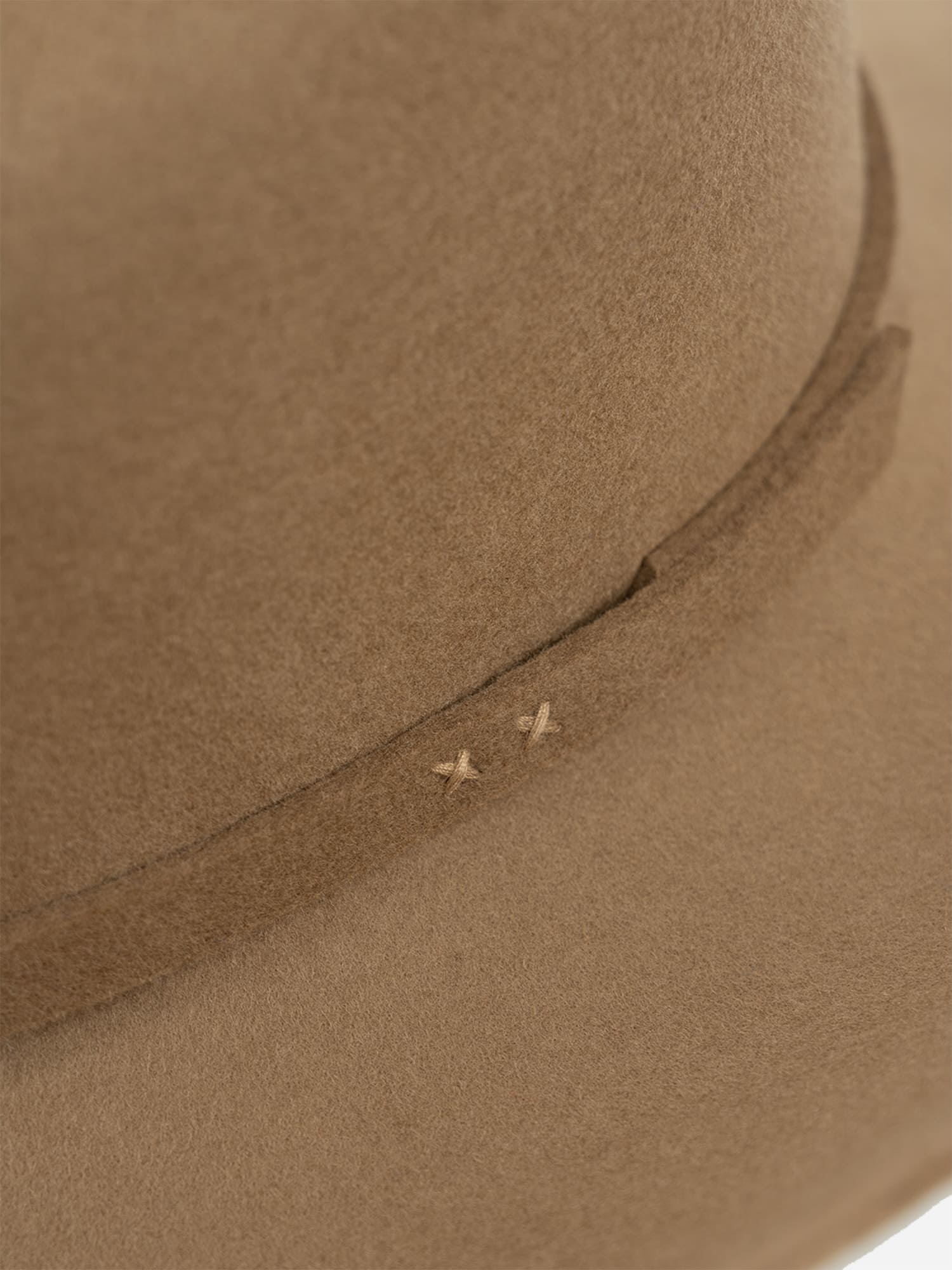 Around the crown, a detachable tonal wool-felt band lets you style it clean or add a touch of subtle detail.