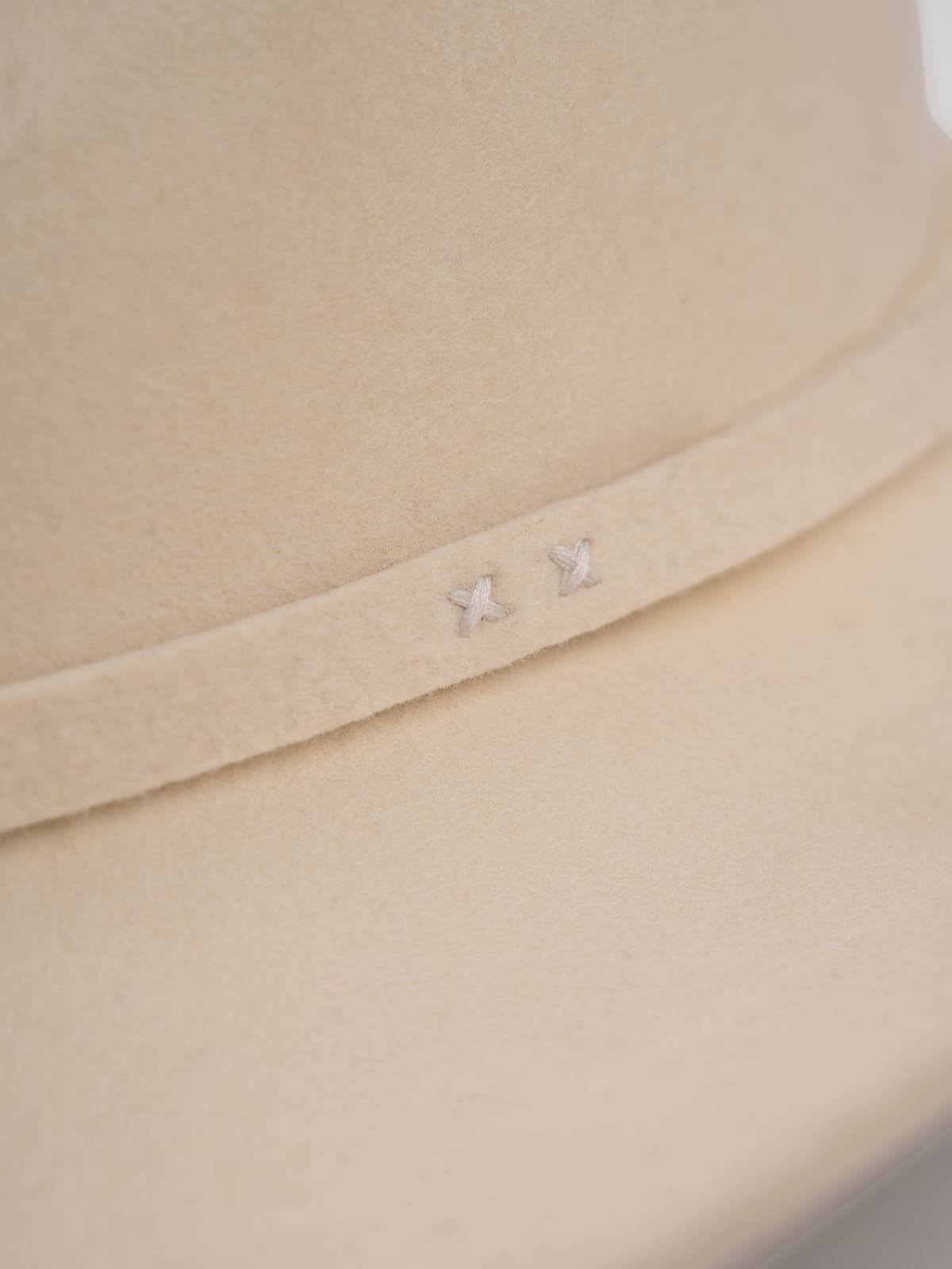 Crafted from super 110s Australian superfine wool with ultra-fine 1.55-micron fibers — among the finest used in wool felt. Soft on the skin, yet structured enough to prevent floppy brims or sagging crowns. Your hat stays sharp and confident.