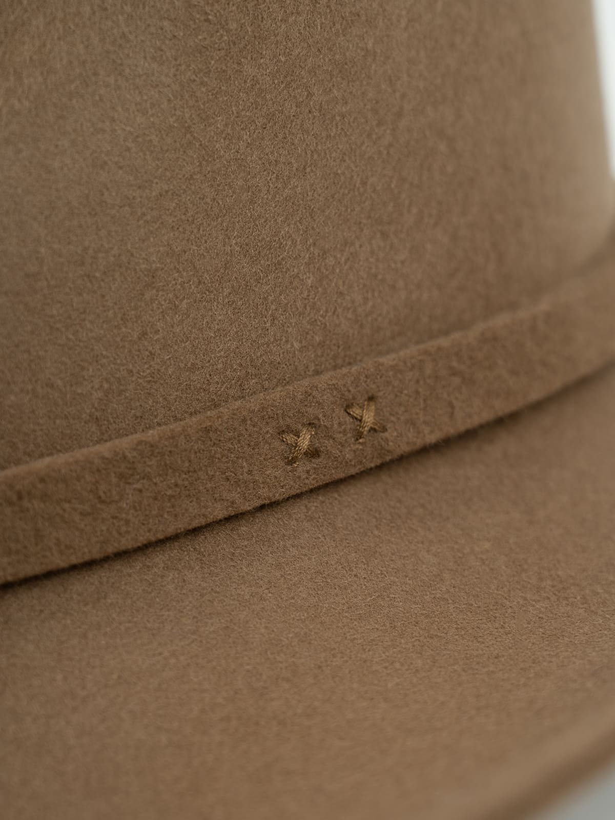 Crafted from super 110s Australian superfine wool with ultra-fine 1.55-micron fibers — among the finest used in wool felt. Soft on the skin, yet structured enough to prevent floppy brims or sagging crowns. Your hat stays sharp and confident.