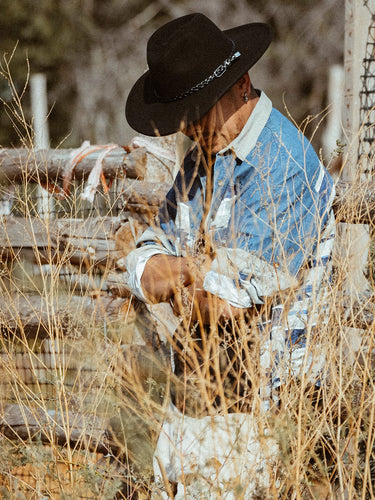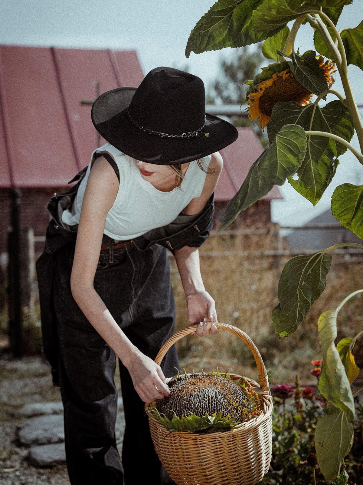 The Outlaw Shadow Felt Western Hat reimagines the classic cowboy silhouette with quiet strength. A hand-braided leather band fastened with aged metal hardware adds texture and confidence — a modern nod to timeless Western craft.