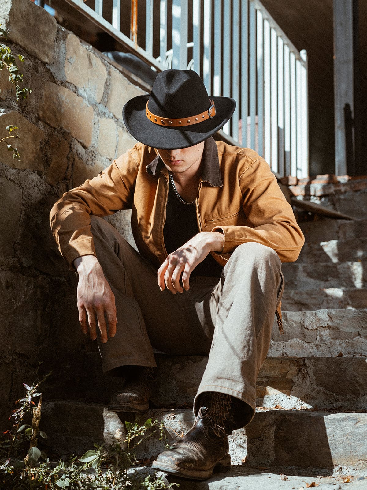 Rustic Flame Felt Western Hat - Black