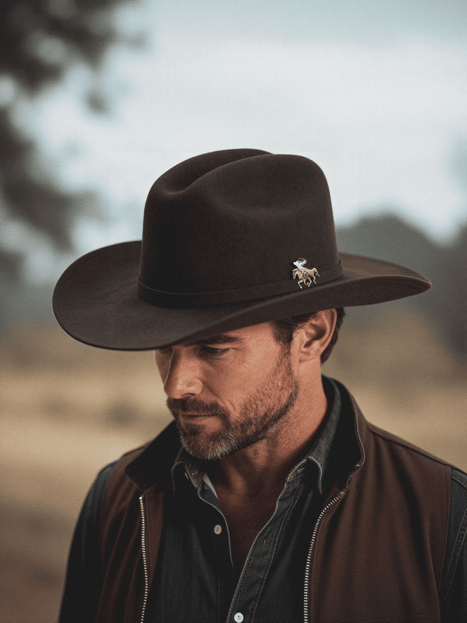 The Parthian Felt Cowboy Hat brings a defined Western silhouette with a structured crown and clean, confident lines.