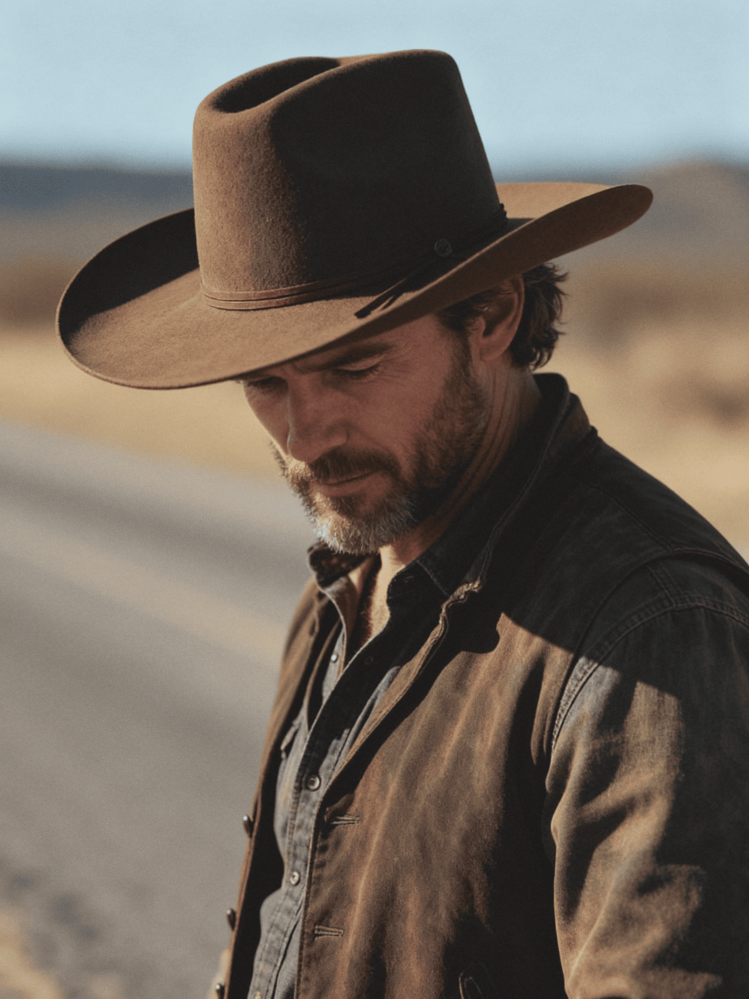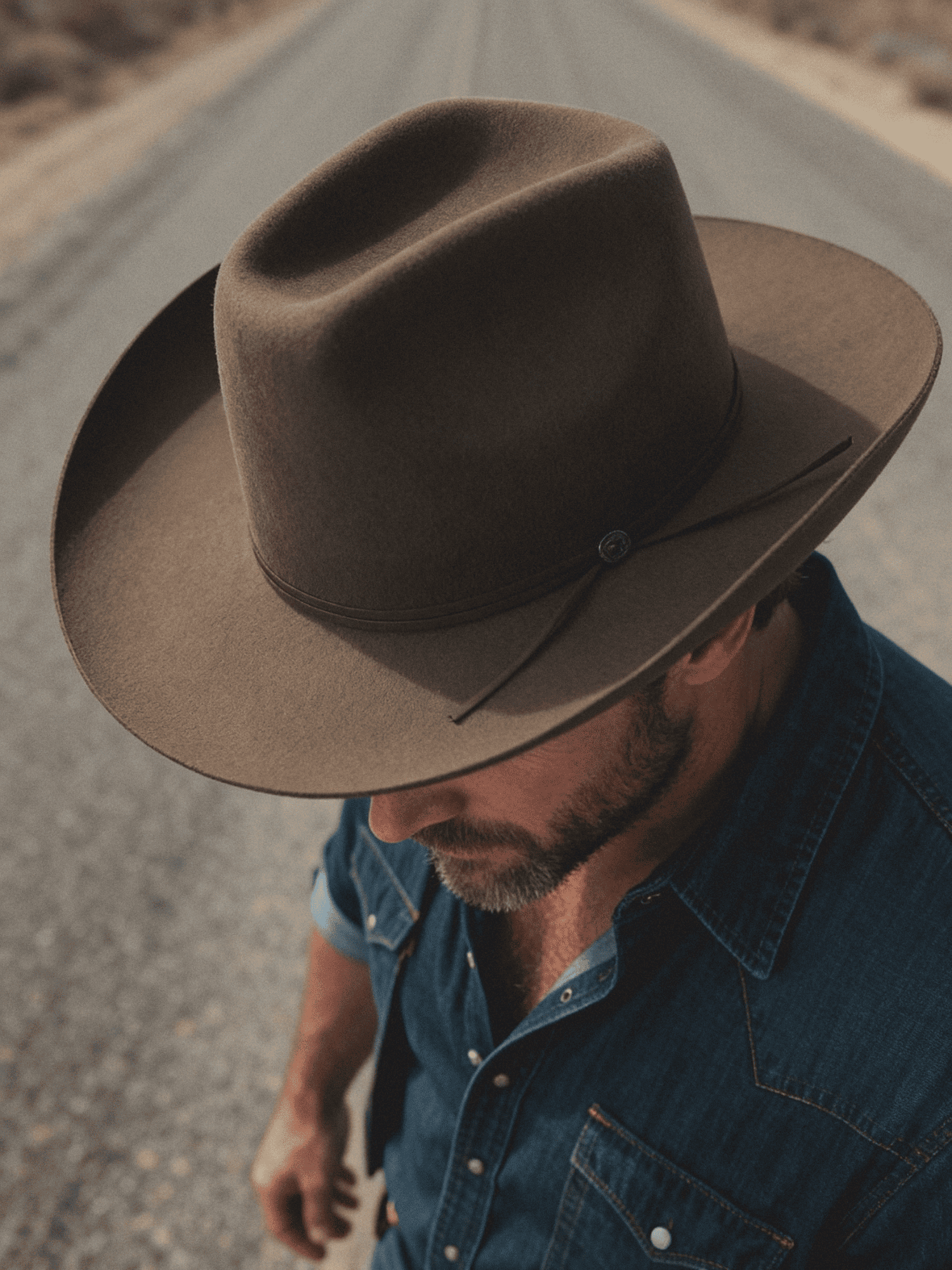 The Dune Wanderer pairs a relaxed, open-crown silhouette with a warm Tibet camel tone. Its slim leather cord hatband is finished with an antique-gold concho, adding a subtle Western accent without breaking the clean lines. Easygoing, earthy, and built for everyday wear.